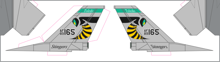 Si vous ouvrez ce pdf dans Inkscape, vous pourrez supprimer les surfaces oranges sur la dérive et ailleurs (ou remettre les bons tons de gris à certaines, la pipette est très pratique pour ça) pour retrouver cet avion tel qu'il était quand il servait dans la Garde du Dakota du Sud. Il faudra aussi supprimer le numéro de conversion QF-16 sur le nez et le numéro de stockage AMARC sur l'entrée d'air et devant l'empennage horizontal.