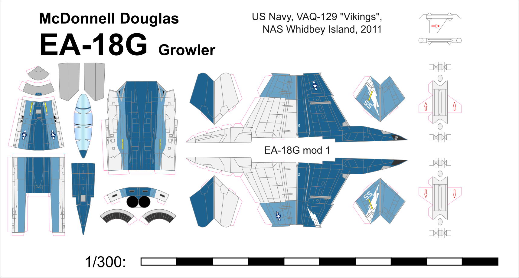 La majorité des illustrations publiées par le constructeur montrent l'avion dans les couleurs de la VF-161, unité dissoute en 1988 alors qu'elle avait échangé ses Phantom pour des Hornet deux ans plus tôt. C'est cette livrée qu'a choisi d'utiliser Bruno pour les 3 versions.