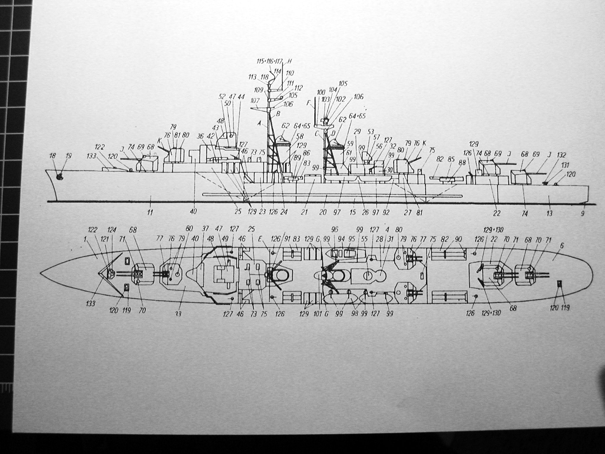 "MAŁY MODELARZ 1958", c'est le Surcouf construit comme Torpilleur T47 après la guerre. Le dessin est