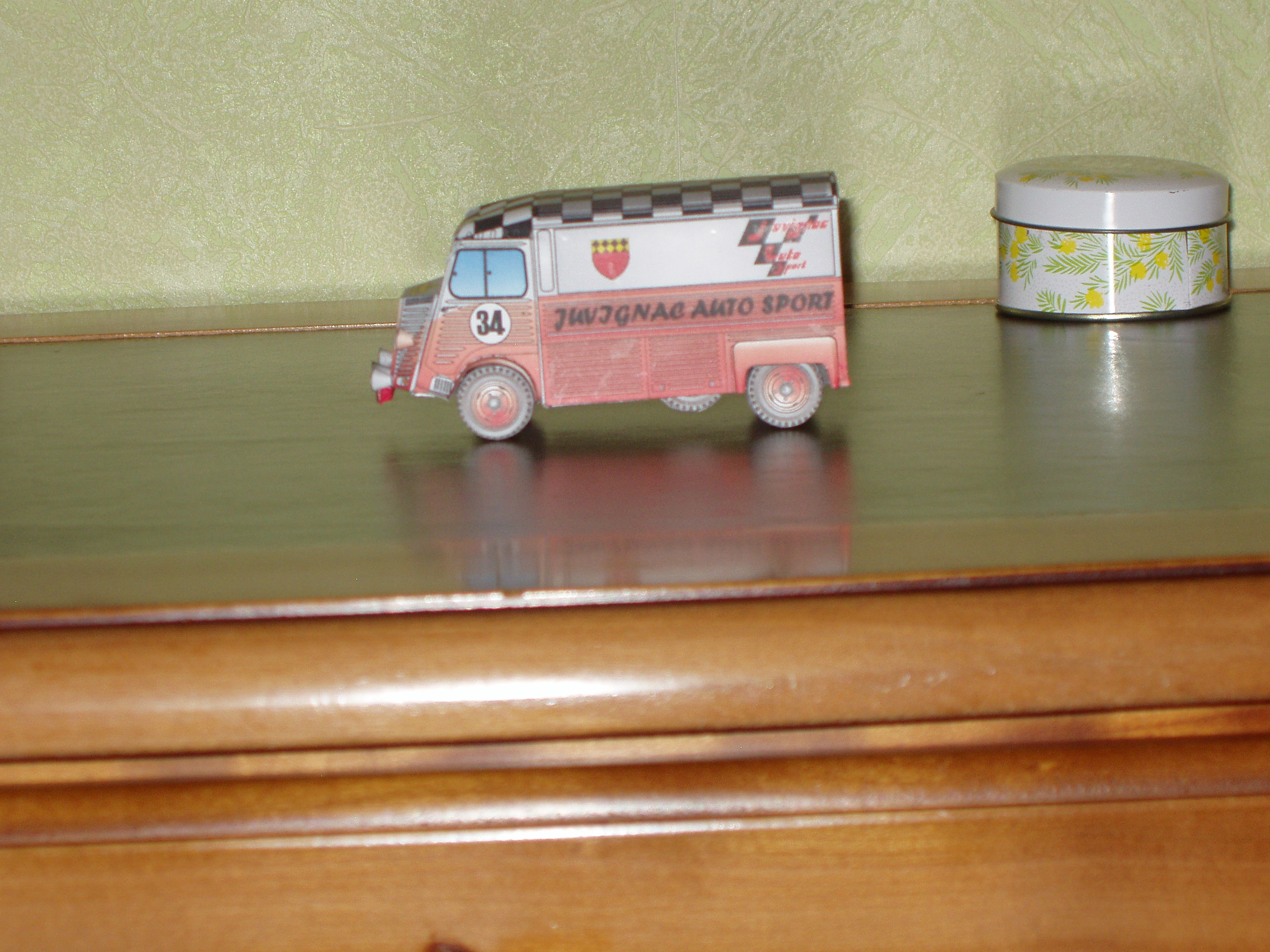 Véhicule publicitaire sans aucun doute possible. quelle ce signe de couleur ocre/jaune que l'on aperçoit sur la partie gauche de la retombée du toit S comme Singer ????????! A creuser