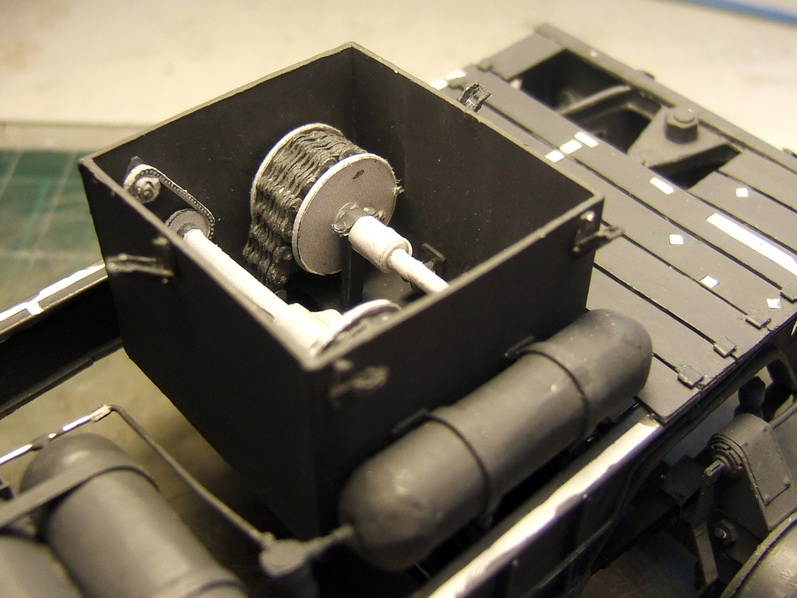 finitions avec mise en place des canalisations d'air conprimé. puis les cables de freins à main. et pour finir montage définitif du train avant A venir les roues que je suis obligé de monter pour pouvoir poursuivre l'amenagement des superstructures. Cela va prendre du temps et donc pas de post avant leur finition