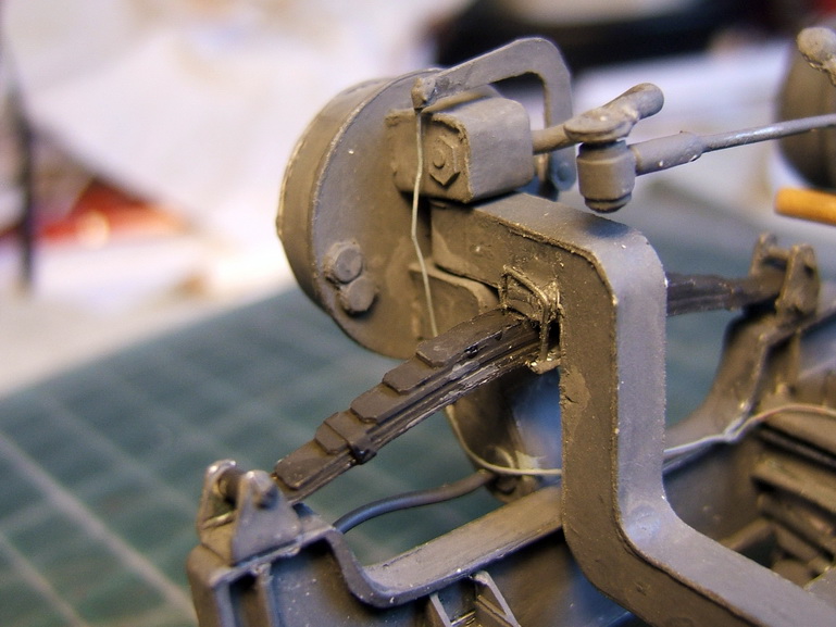 finitions avec mise en place des canalisations d'air conprimé. puis les cables de freins à main. et pour finir montage définitif du train avant A venir les roues que je suis obligé de monter pour pouvoir poursuivre l'amenagement des superstructures. Cela va prendre du temps et donc pas de post avant leur finition
