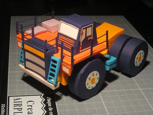 Le camion de mine, je l'ai fait en grand format pour faire une illustration en gros plan. Maintenant, je prépare aussi les petits formats pour faire une petite saynète (il faut que je fasse au moins 6 camions, une grosse pelle électrique et divers trucs...).
