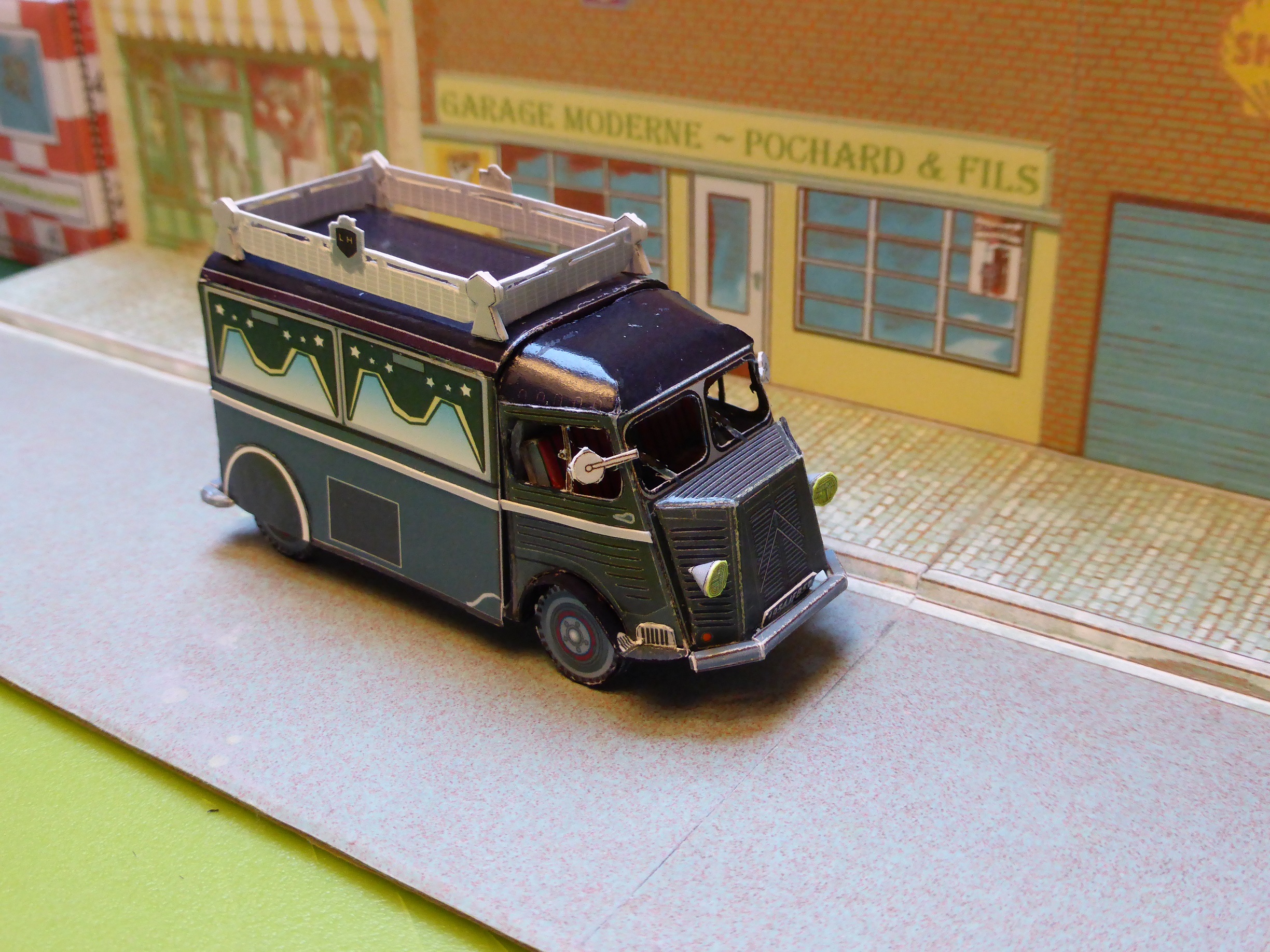 Comme je continue mes investigations et l'inventaire de tous les modèles que nous avons assemblès (Souvenez-vous : 1000 et 1 H pour l'anniversaire de 2017), je viens de redécouvrir la magnifique réalisation de Michel cerfvoliste : le Citroen HY 1962 “Manfriet” téléchargé sur le site "http://www.paperdiorama.com" et réduit à une échelle proche du 1/52e