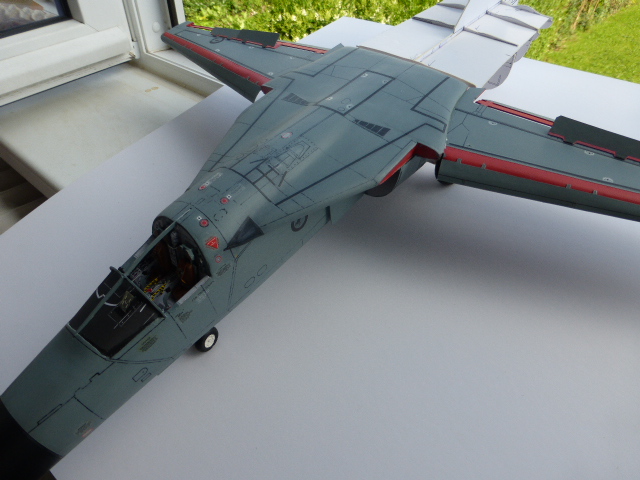 bonjour , j'ai réfléchi à la position des ailes , en fait , je pense que pour ce modèle , je l'équiperai de 2 paires d'ailes , une en position ouverte et une en position delta , les 2 interchangeables .