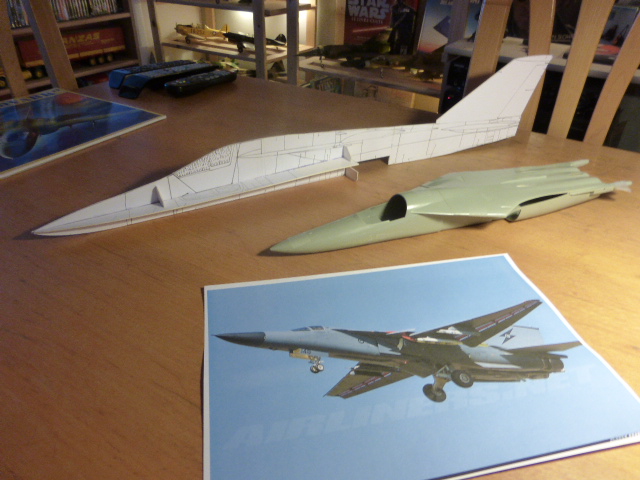 bonjour , j'ai réfléchi à la position des ailes , en fait , je pense que pour ce modèle , je l'équiperai de 2 paires d'ailes , une en position ouverte et une en position delta , les 2 interchangeables .