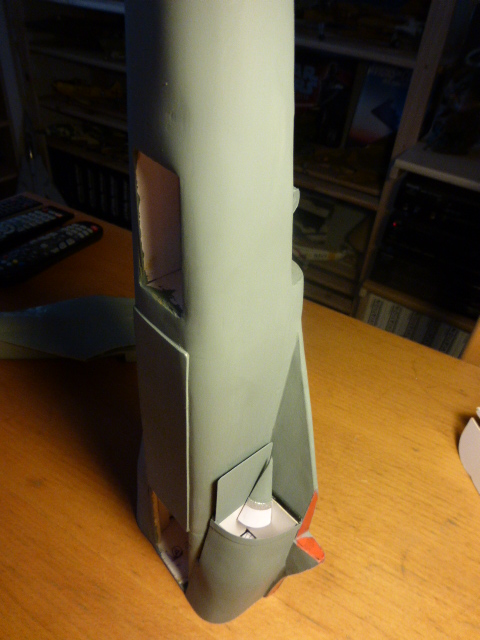 Bonjour , la partie avant est pratiquement terminée , le dièdre des ailes sera corrigé ( ailes actuellement non collées ) lorsque la partie arrière sera collée à l'ensemble .