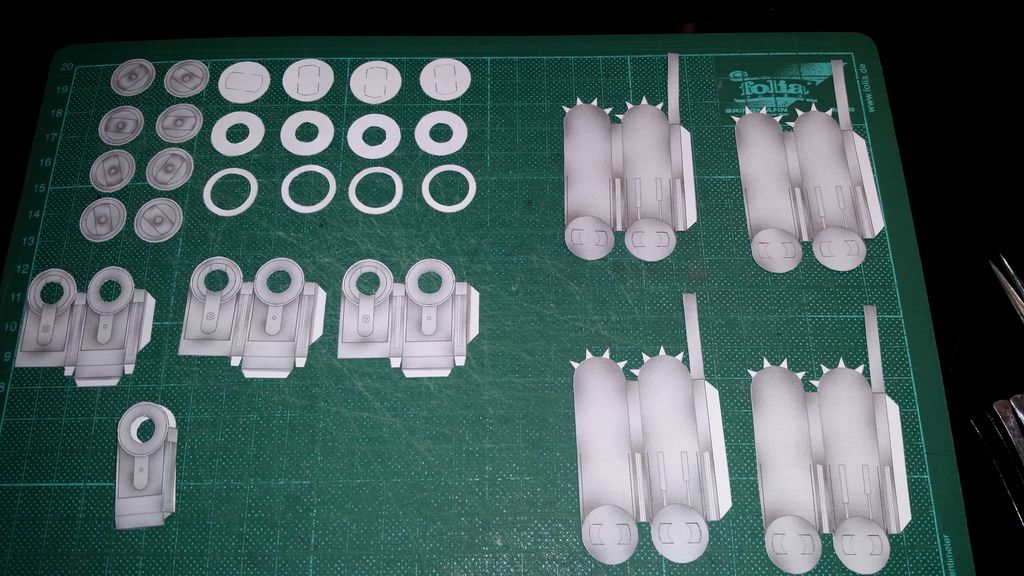 Découpe des pièces des jambes. Dans ce modèle de maquette; il y avait la possibilité de faire des jambes fixes (maquette entièrement rigide), ou articulée. c'est cette option que 'ai choisi (il y a donc plus de pièces à découper et l'assemblage sera plus délicat)