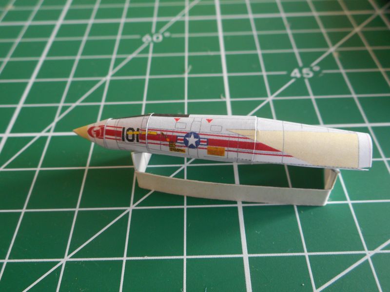 Je n'ai pas imprimé le calque contenant les couleurs (gris principalement) ni les ailes/dérives/plans horizontaux. J'ai aussi testé le positionnement des lignes rouges à l'arrière du fuselage.