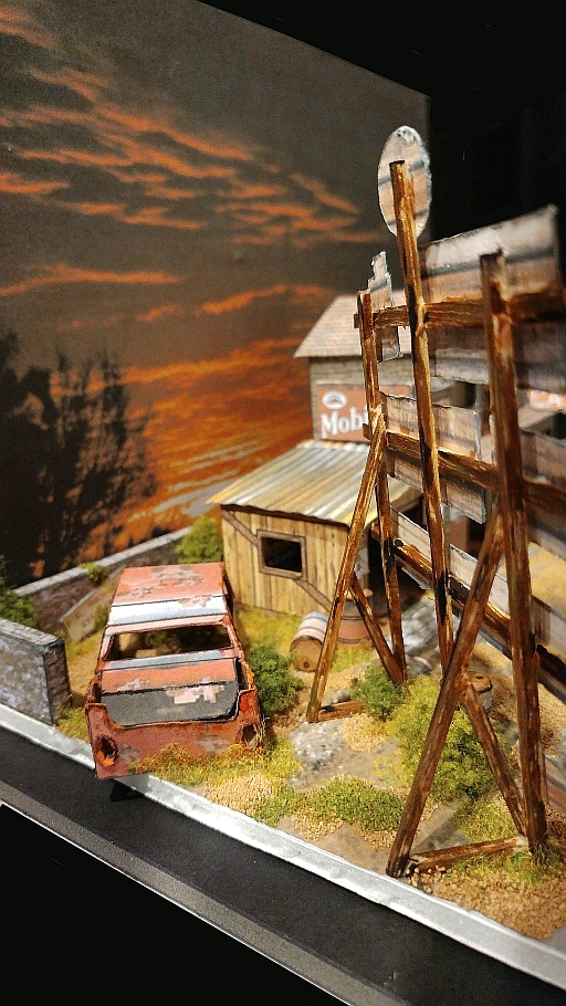 J'ai cherché à donner l'ambiance qui colle à la maquette et puis pour le fun j'ai rajouté la Chevy Impala 67' des frères Winschester de la série Supernatural.