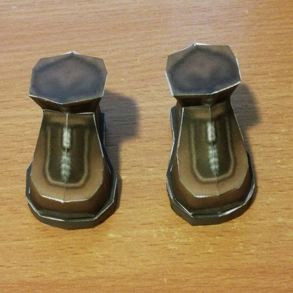 Cette pièce d'armure est au final totalement indépendante du personnage, simplement glissée sur les jambes, non collé, ce qui permet un réajustement si besoin.