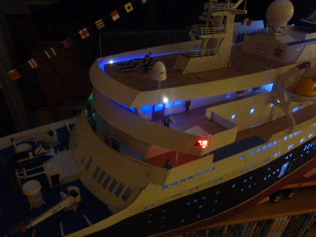 - éclairage ponts de travail arrière , partie frontale , futures superstructures supérieurs et feux de navigation au moyen de leds 12V DC et d'un