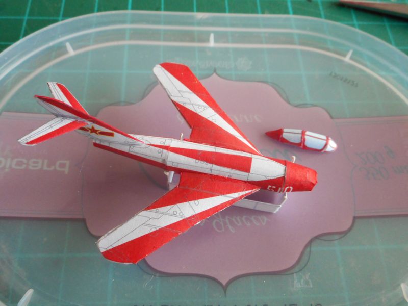 J'ai fait la verrière en premier car elle me cause toujours des soucis et je préfère que la colle soit bien sèche avant de la fixer au fuselage. J'ai laissé des pattes de collage (non figurées sur le modèle) de chaque côté des 2 segments centraux. On ne les voit pas sur les photos car elles sont pliées en place sous la pièce.