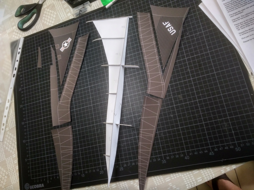 Bonjour, je vous présente le travail d'un après-midi de confinement, les deux dérives et les parties des ailes extérieures.