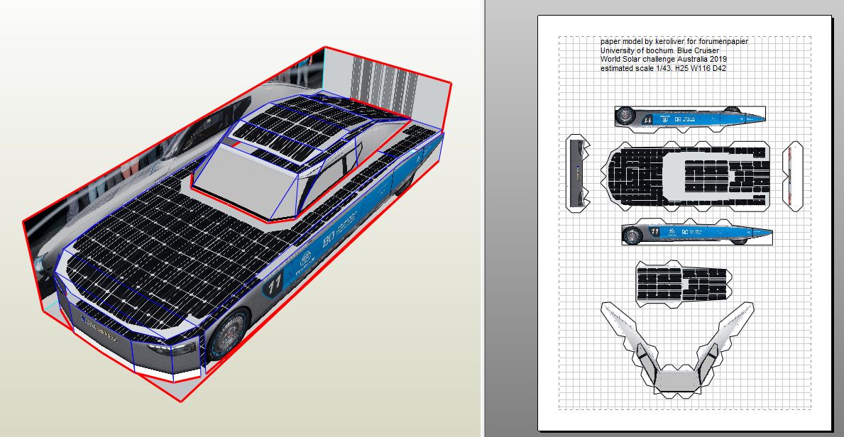 paper model by keroliver for forumenpapier. Stella Lux solar car. Scale 1/43. H26 W105 D40