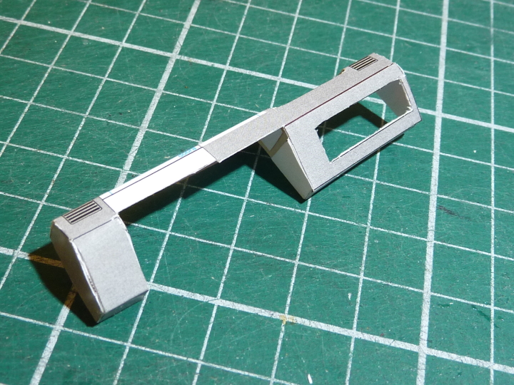 De toute manière, je ne pense pas au papier pendant le processus du projet, pour certaines pièces je préfère les connecter avec du "flap" de collage indépendant comme dans ce cas, la porte d'arrière. Pour les épaisseurs, ce sont celui qui ont marché bien dans mon montage. Un peu improvisé, on dirait, mais ça marche !