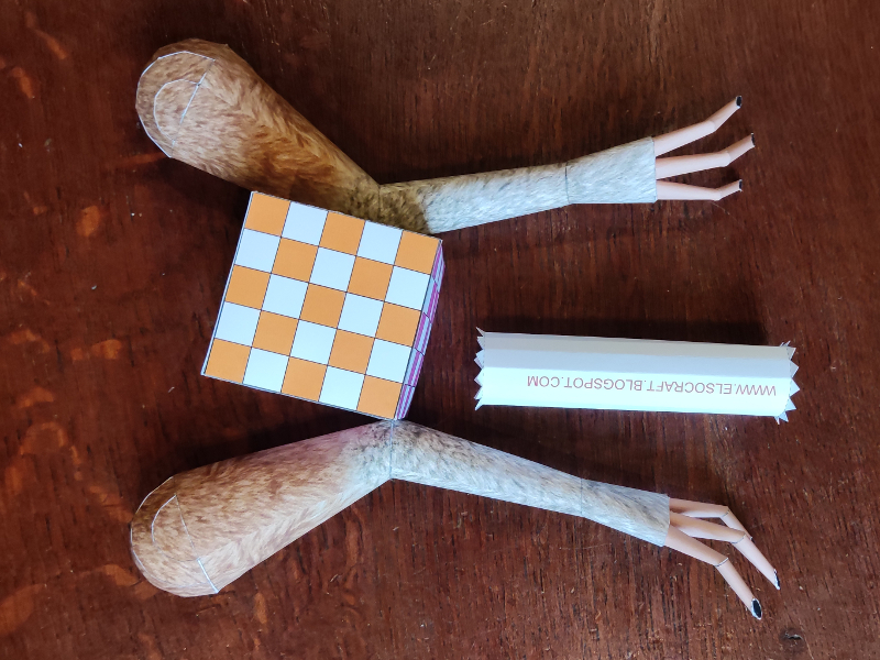 Au vu des planches qui restent, il s'agit des plus petites pièces du modèle. Après, je n'ai pas mis de cube repère, mais ils font quand même 4 cm de long chacun, et une vingtaine de cm pour l'ensemble du bras !