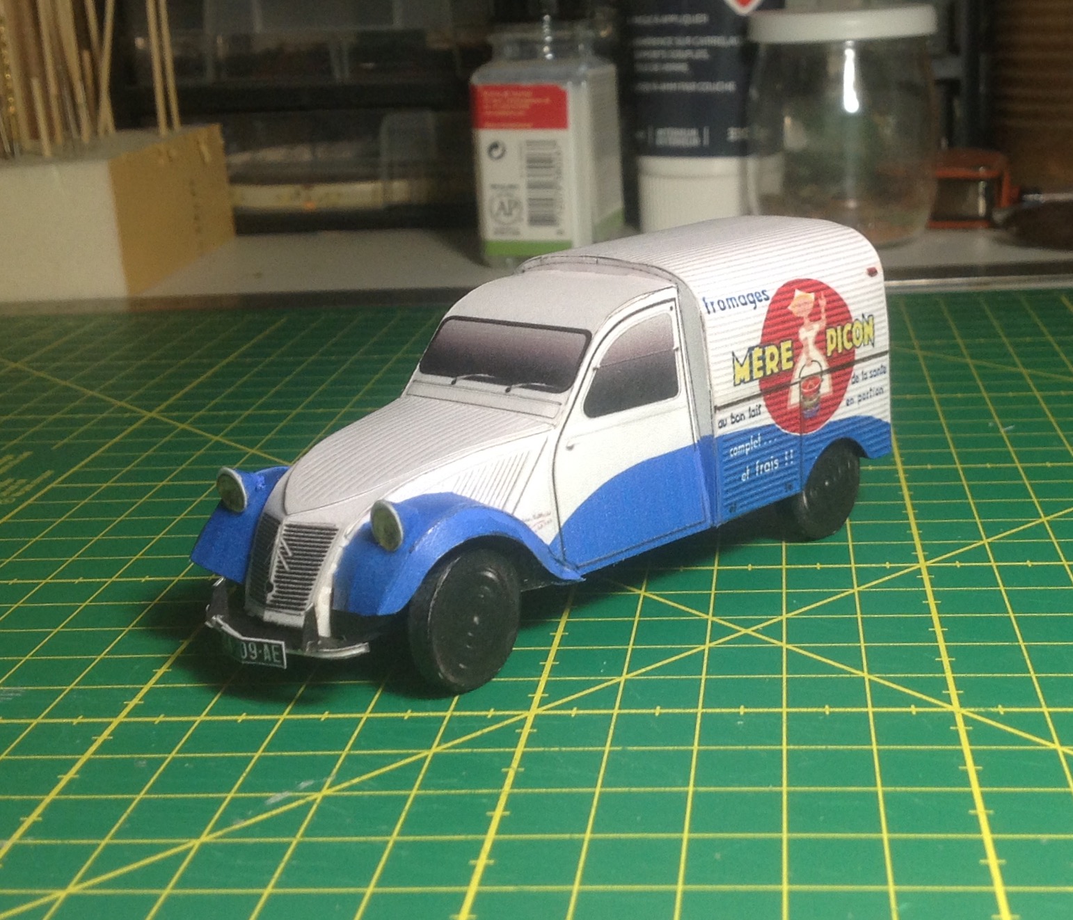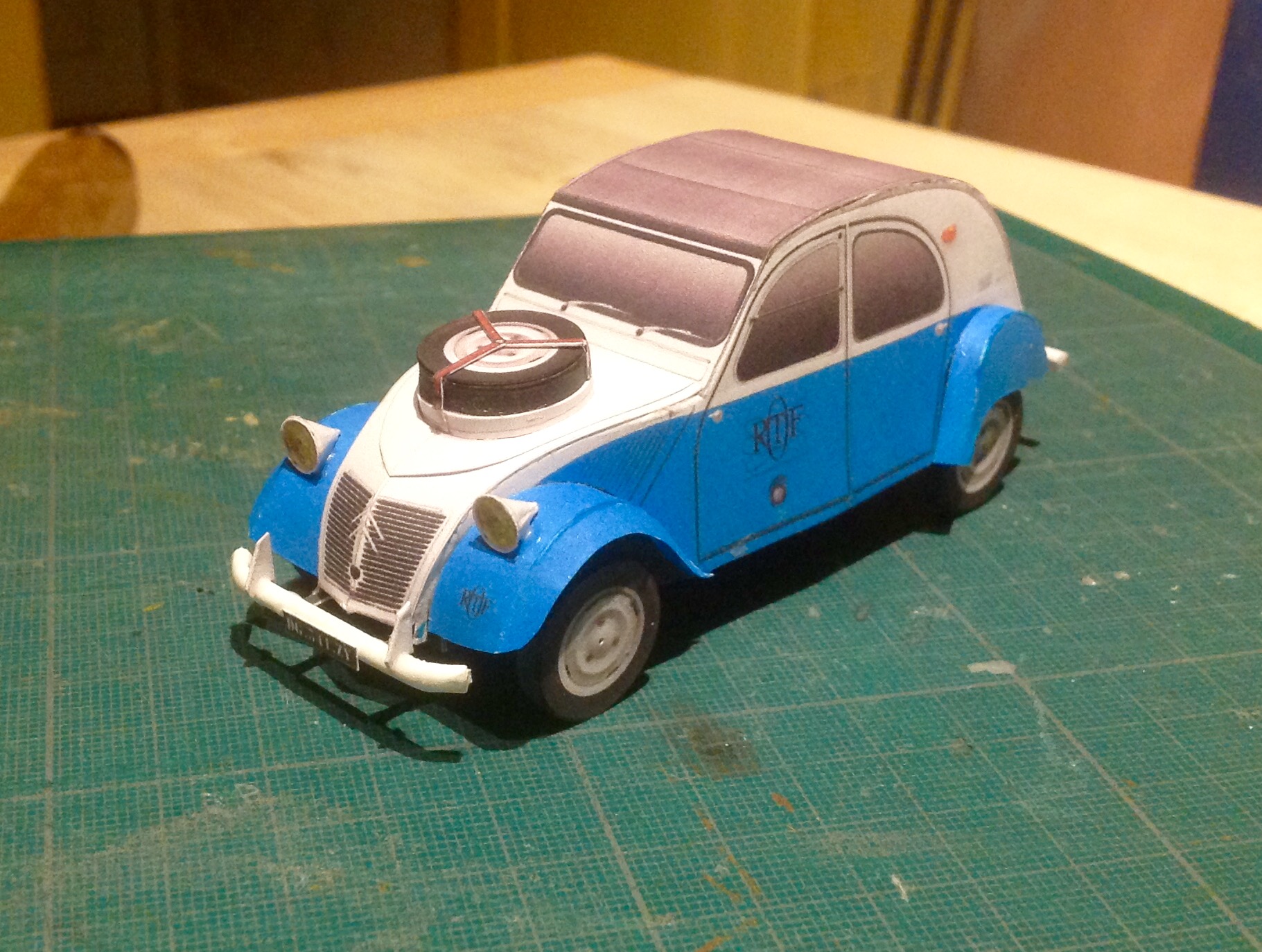 De retour parmi vous, j'avais pris la précaution d'emmener quelques feuilles imprimées dans mon ermitage limousin. Voilà le résultat : 2cv Sahara de paperdiorama et hy 1/32 de Camille.