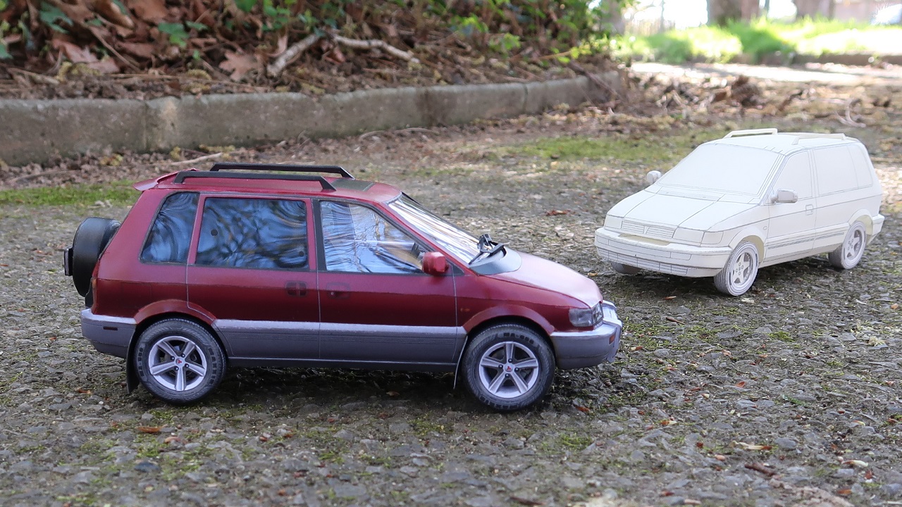 Salut Les Amis! Aujourd'hui, l'assemblage d'essai de la voiture Mitsubishi Space Runner 92 année. À l'échelle 1-25.