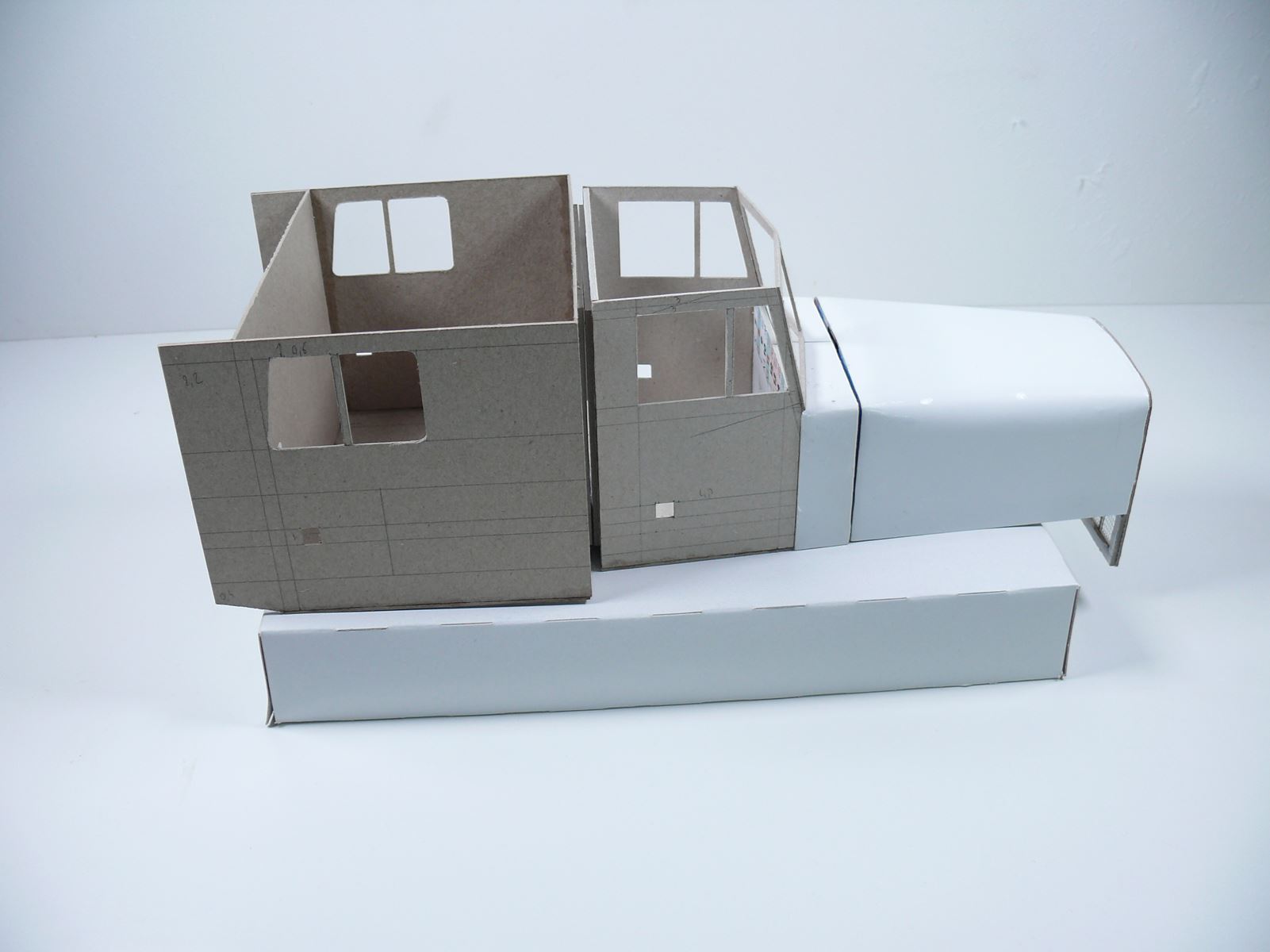 Les faces externes de la carrosserie ont été habillées, les gardes boue ont été montés, le pare-soleil a été ajouté et le chassis a été monté. Prochaine étape : construction des roues.