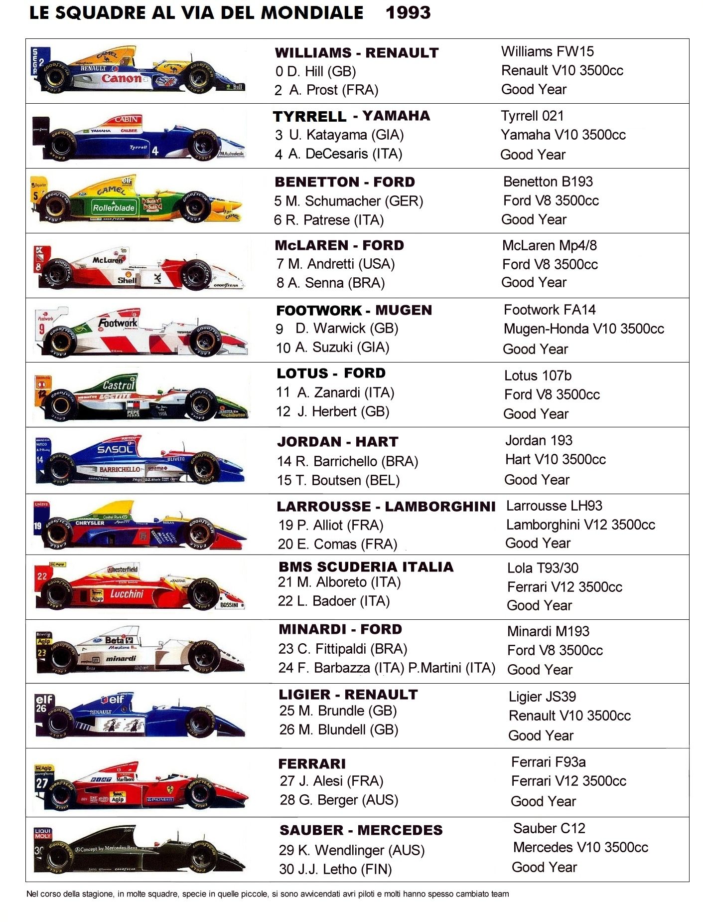 Y'a des Jordan , des Lotus, des Renault Williams, etc...