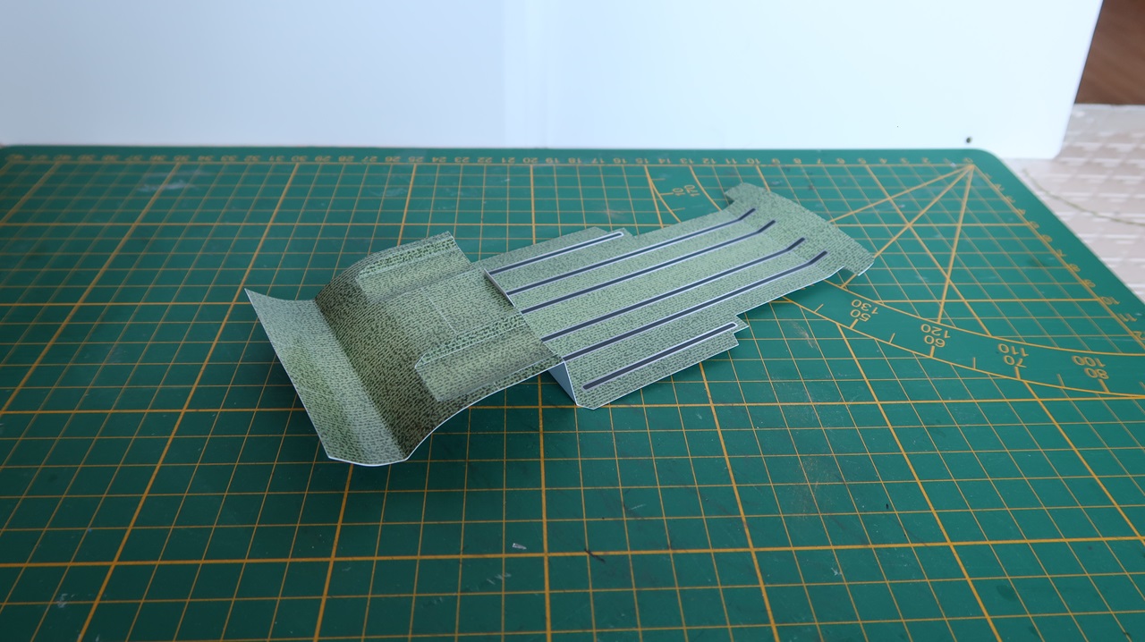 Le modèle est pratiquement assemblé. Il reste à recouvrir de vernis pour protéger les surfaces en papier. Mais pour l'Instant, le temps ne le permet pas. J'ai essayé d'en bas sur le support et le vernis n'a pas gelé jusqu'à la surface. Eh bien, je n'ai pas commencé avec le modèle. Une prise de vue plus détaillée est reportée.
