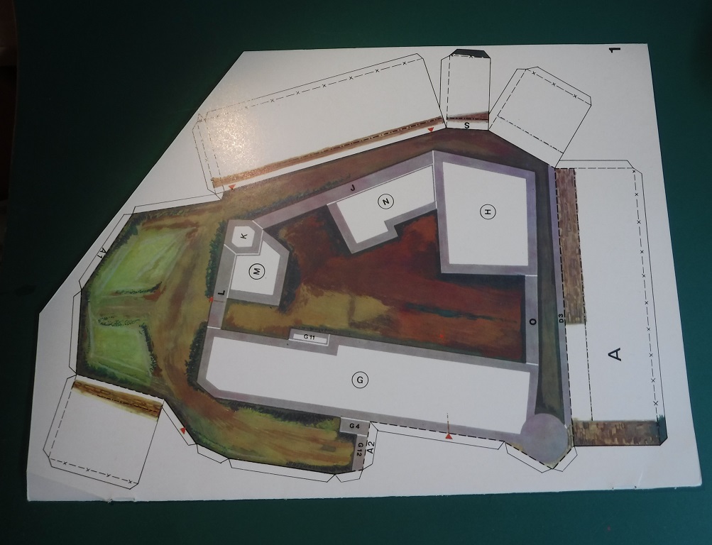 ... que j'ai posées sur du carton gris de 0,9 mm. Collez, cela crée le plan du château avec le terrain.