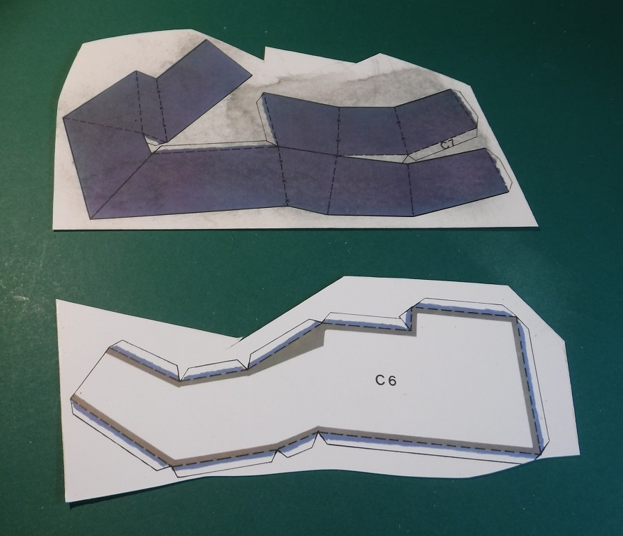 ... que j'ai posées sur du carton gris de 0,9 mm. Collez, cela crée le plan du château avec le terrain.