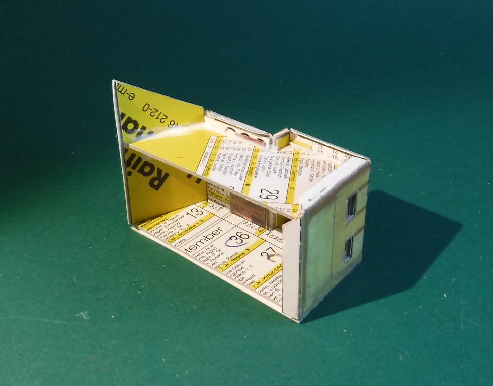 Des sachets de thé imbibés d'eau de colle servent de base, qui sont ensuite recouverts de morceaux d'écorce et de papier toilette et de papier pour sachets de thé...