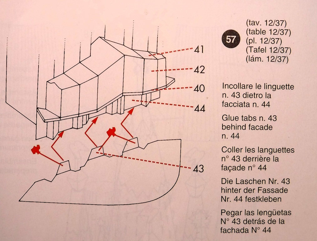 - … quatre fois la pièce 53, collez les languettes coupées…