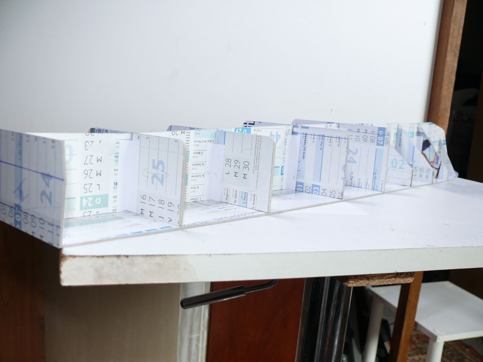 J'ai donc dans un premier découpé le pont du bateau : Puis, j'ai construit le squelette des différentes tranches de la coque qui à ce stade sont indépendantes les unes des autres même si cela ne se voit pas sur la photo :