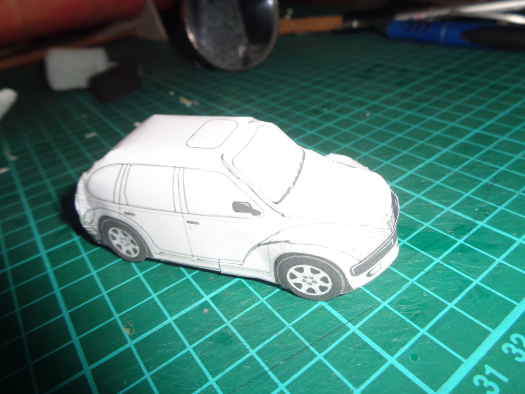 Vous avez absolument raison! Mais la forme de la voiture est très compliquée pour le papier. Il est peu probable que nous trouvions quelque chose de mieux.