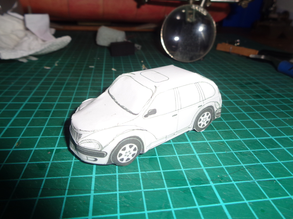 J'ai collé rapidement un prototype de la chrysler en papier 80g. Le modèle se monte très facilement, mais est encore perfectible!