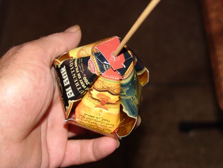 Coller le papier ici doré et là argenté aux dos des images des boites d'embalage d'aliments.