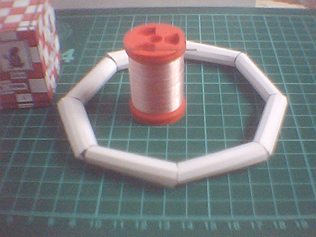 et pose de l'anneau, pour l'anneau j'ai tendu les fil et les est scotcher ensemble pour bien centrer l'anneau par rapport au corps(mais la j'ai eu la main lorde sur le scotch :? )