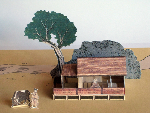 Je me suis inspiré d'une authentique estampe, représentant un acteur de kabuki contemplant un... tatebanko ! Je vais essayer de faire, en vrai, le tatebanko en question. Bon, je ne me leurre pas ce sera juste une sorte de transposition, pas la réalité.