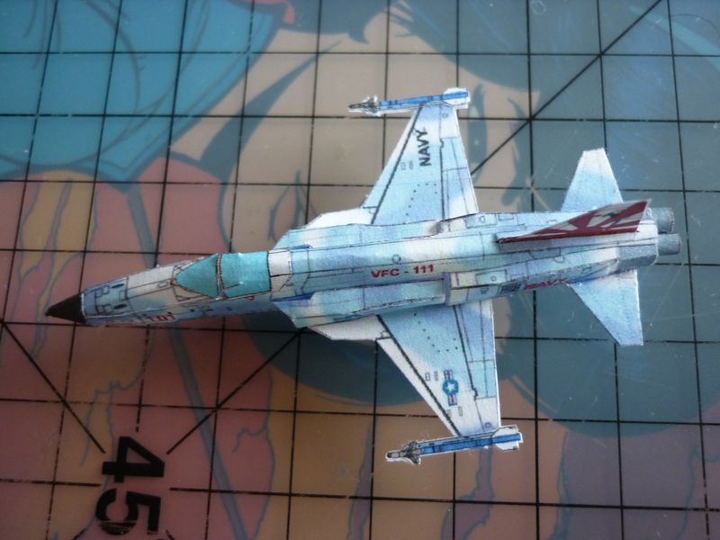 Un montage plus ancien (début mai) : le recoloriage par DoubtingThomas (de papermodelers.com) aux couleurs du CAG-bird de la VFC-111.
