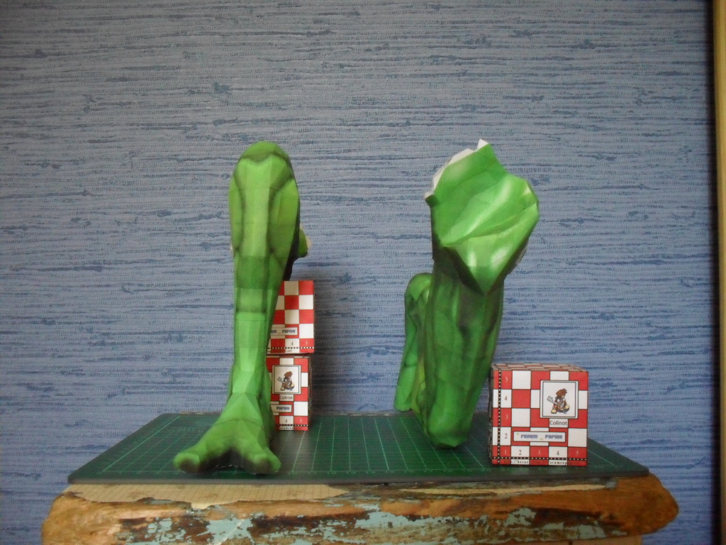 Merci du compliment. maintenant suite et fin des jambe en trois post.deux astuces: -normalement il faut mettre la pièce du haut derrière l'autre mais vous pouvez faire sans pour que ça épouse mieux la jambes (penser a rajouter la languette manquante).