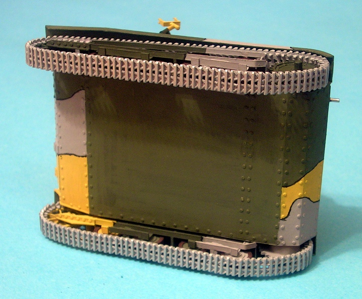 Aujourd'hui, j'ai installé les chenilles, les outils, la mitrailleuse et la porte-mitrailleuse. J'ai aussi essayé de mettre un peu de tension (le poids de chenille) sur les chenilles (voir le conseil de jeanma), mais je n'ai pas réussi. Heureusement, les photos de l’époque montre, que les chenilles étais plutôt tendues (voir ici).
