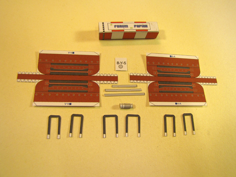 encore de toutes petites pièces : puis des plus grandes : et quelques sous ensembles construits prets à être fixés sur la loco: et de nouveau des pièces découpées: salutations et à suivre.