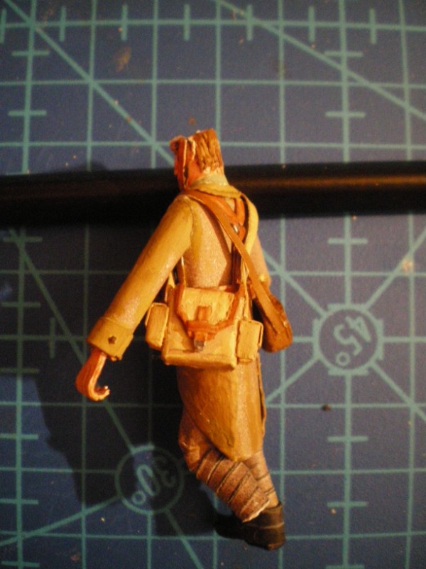 Je vous fais parvenir de nouvelles photos. j'ai dessiné et fabriqué un nouveau casque. En effet, le premier était loin de me satisfaire. Ensuite, j'ai surtout travaillé sur les couleurs de la figurine : ombres etc. Les boutons ont été ajoutés.