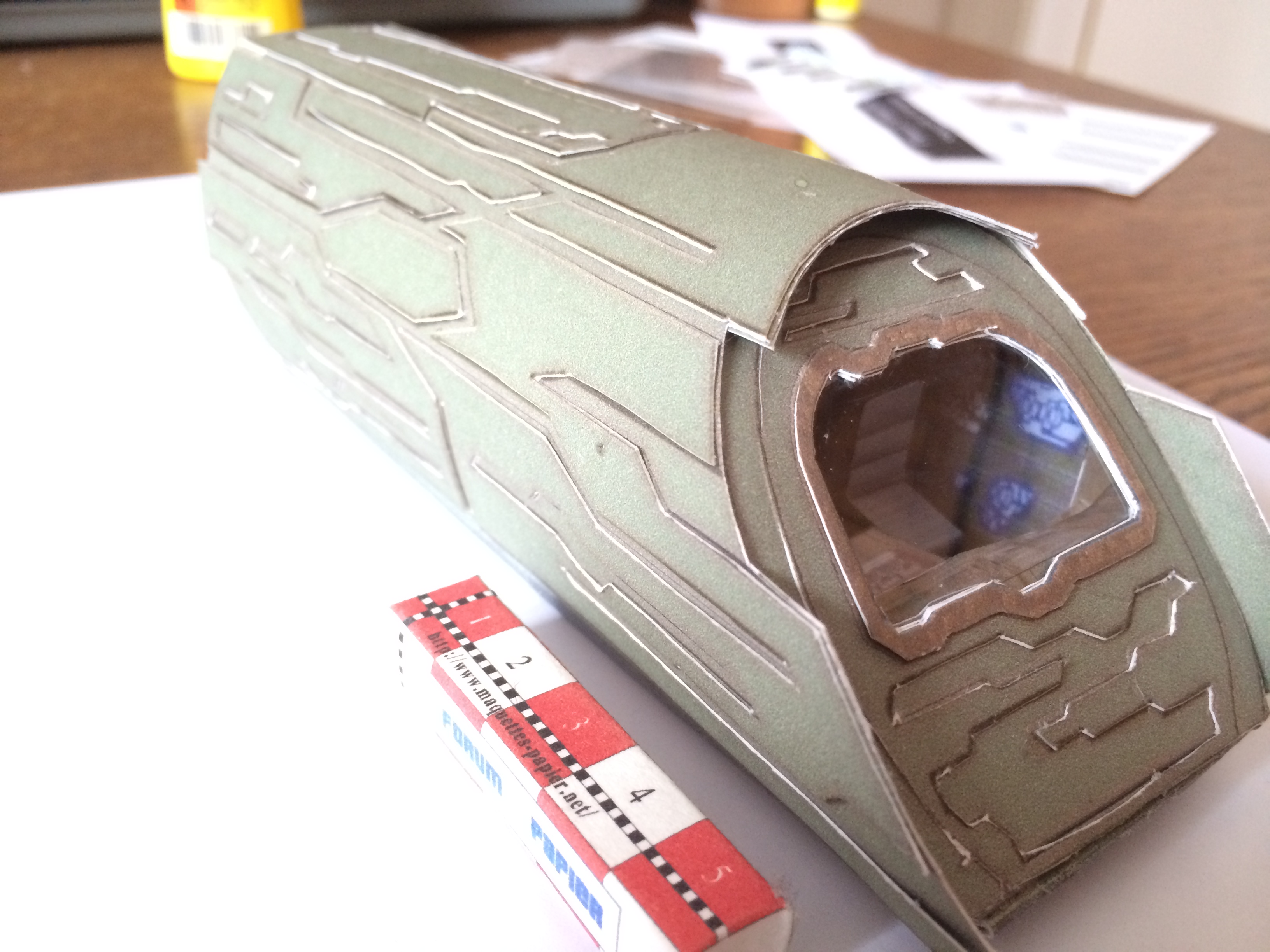 apparemment tu as réduit le DHD... pas trop galère ? j'avais déjà eu du mal avec la taille d'origine, surtout pour le socle, mais j'avais choisi un papier beaucoup trop épais faut dire...