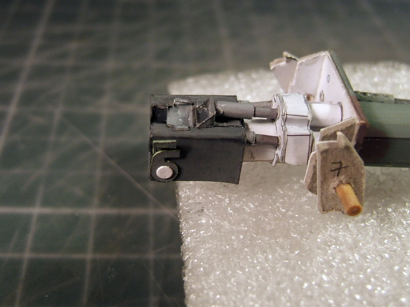 Seuls sont réalisés les deux périscopes arrières (devant le poste de radio et au dessus du barillet.