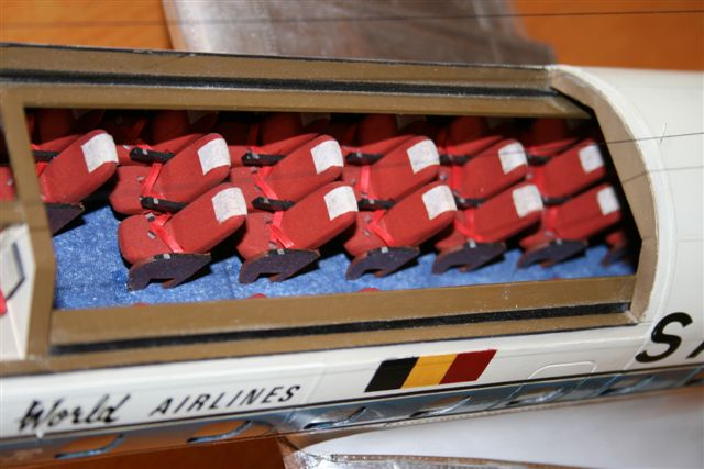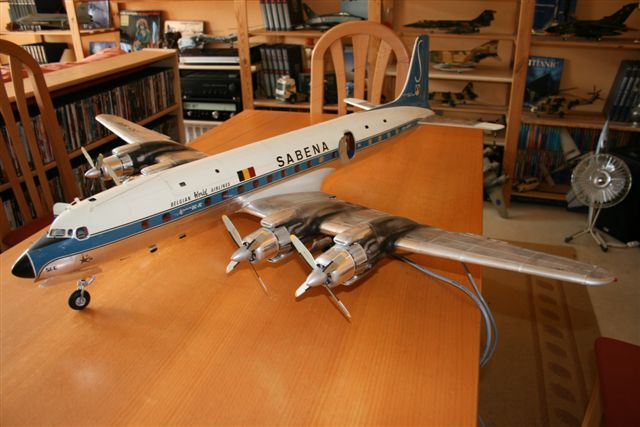 voilà mon DC7C , toujours au 1/32 , les moteurs fonctionnent , il y a l'éclairage interne , de cabine et les phares