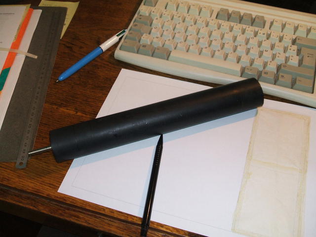 Puis on le roule vigoureusement avec l'outil en noir (rouleau scié d'imprimante - le sciage n'a rien à voir avec son usage actuel)