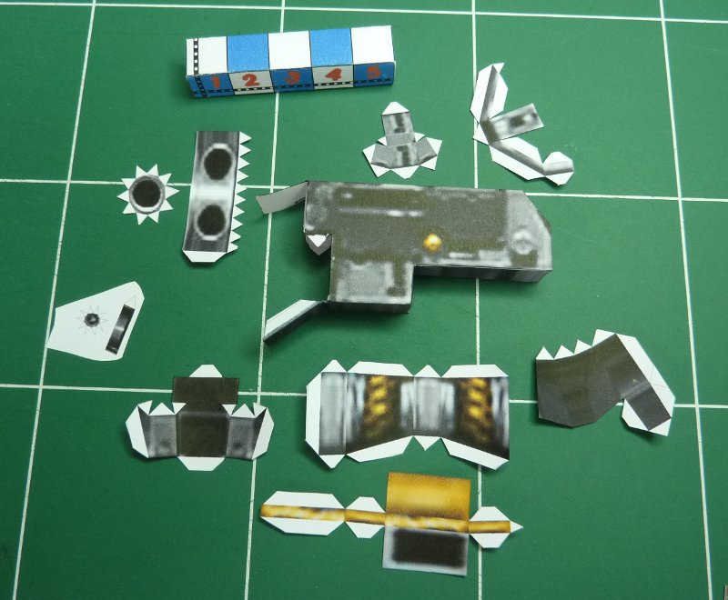 on reste dans les armes : le bolterune partie des pièces. J'ai reforcé par l'intérieur la partie principale pour que ce soit rigide la suite en cours de montage des petites pièces terminé! et la horreur