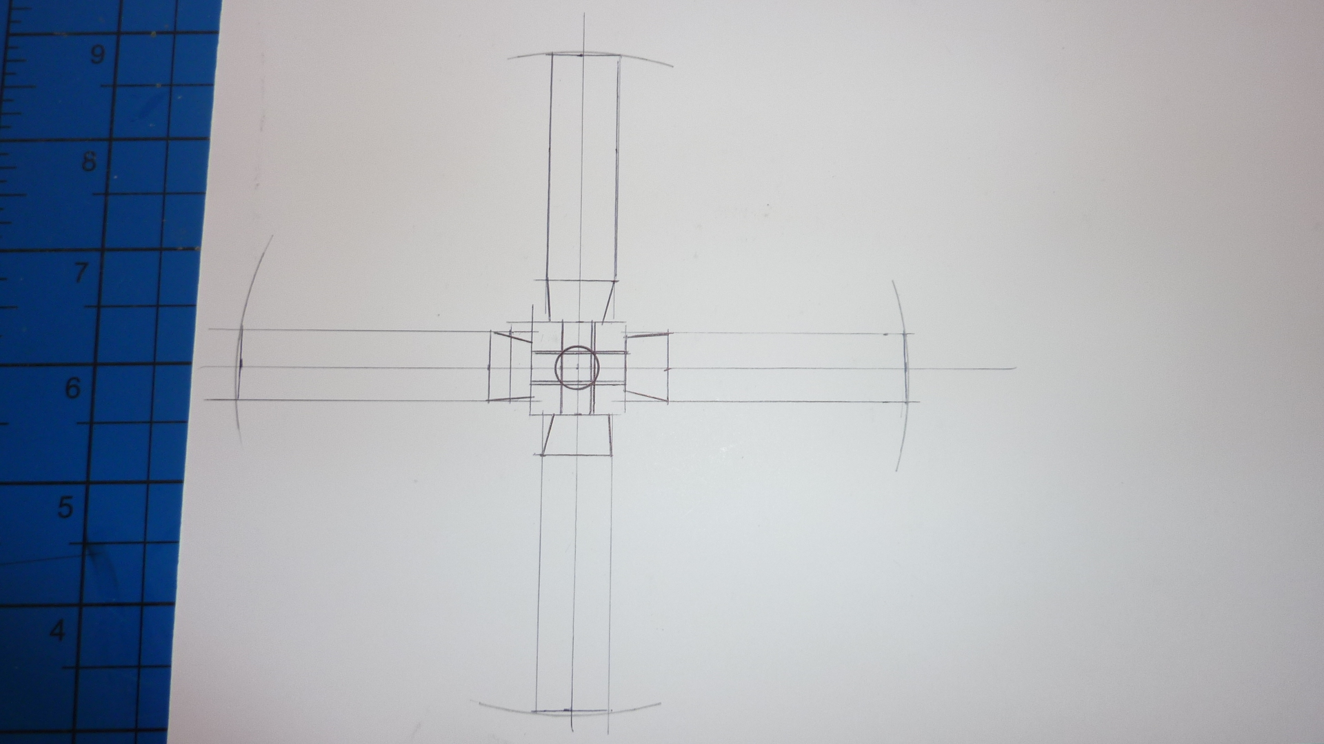 la 2° serie montre la réalisation des hélices ( à partir de la vue en plan ,les pâles réalisées par collage d'une feuille balsa de 1 mm de part et d'autre sur chaque pâle de la vue en plan , puis ponçage et peinture