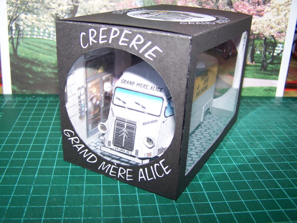 Le modèle et sa boite étant terminé,je le posterai dès demain à destination de la crêperie "Grand mère Alice".
