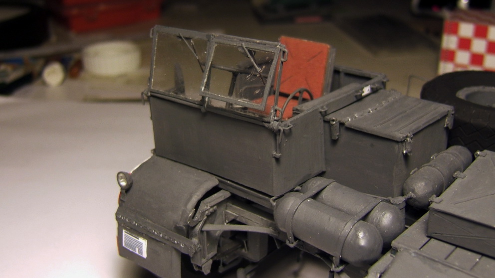 Suite avec les cloisons du poste de conduite et le pare-brise.