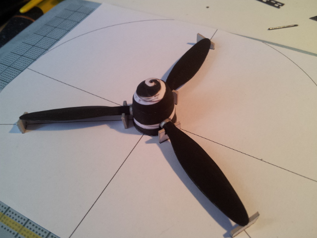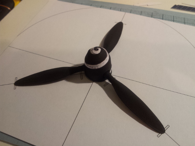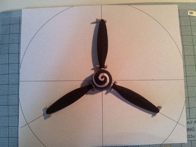 Positions des taquets plus collage ; retouche peinture des moyeu des pales en argent